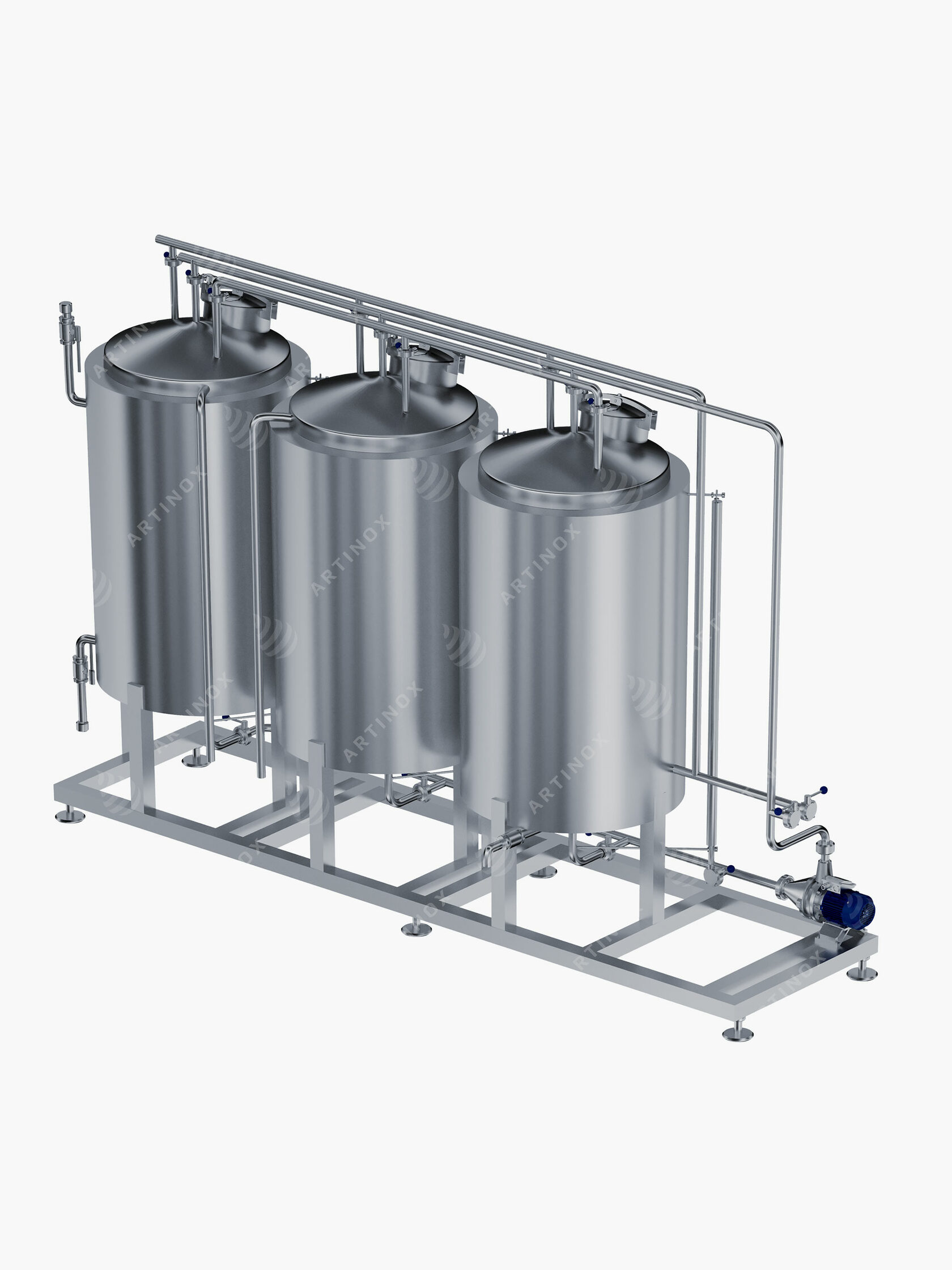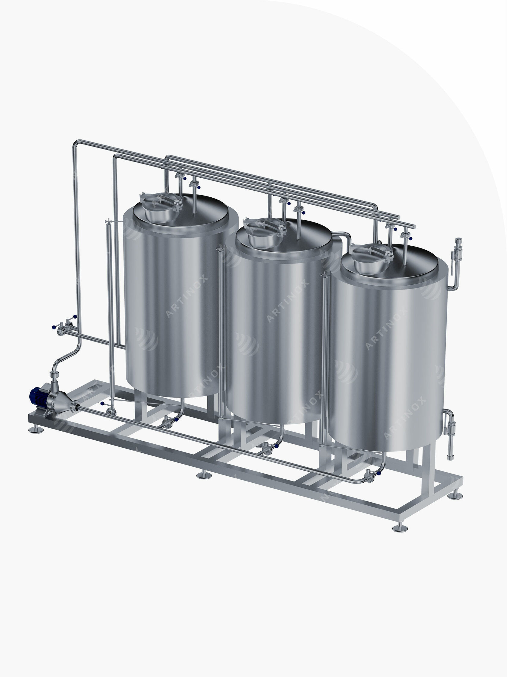 CIP stations (clean-in-place) - stainless steel installations for washing brewing equipment with disinfectant solutions.